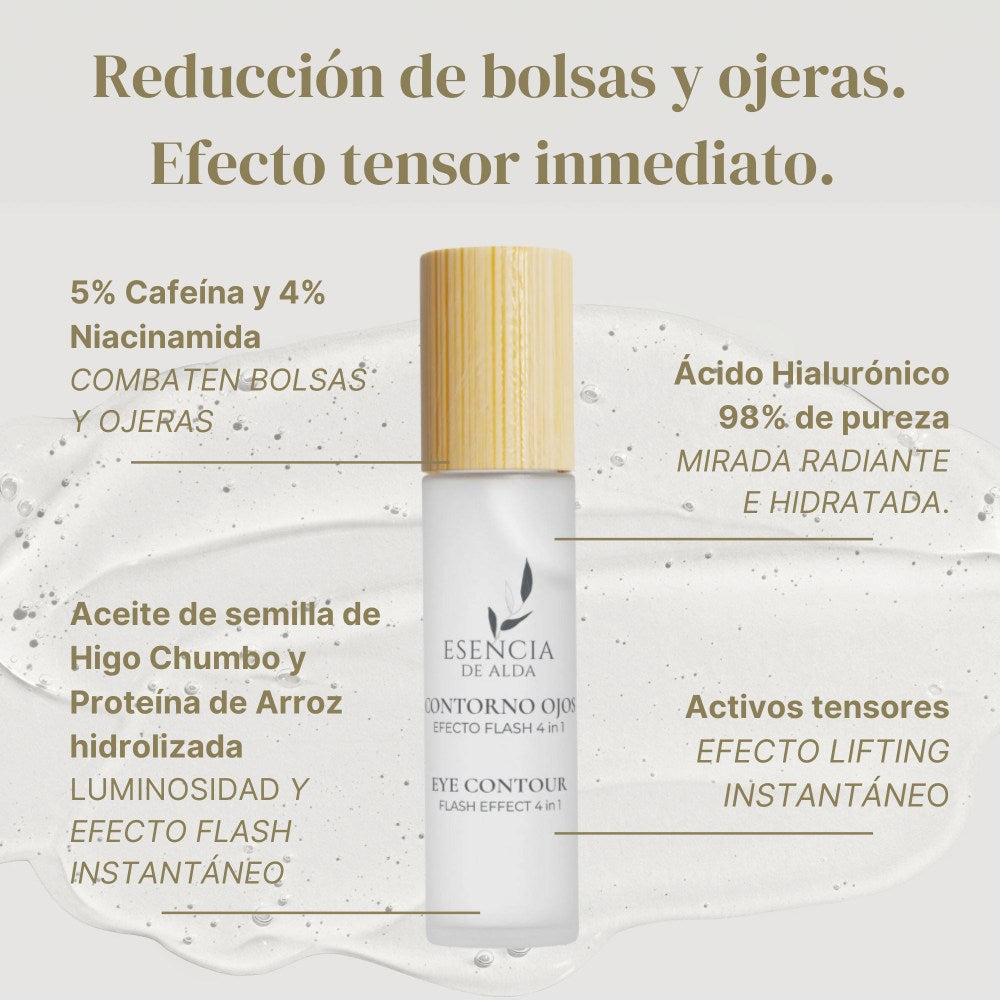 Activa la microcirculación (menos bolsas y ojeras).Drenante y descongestiva. Aporta firmeza y tono.